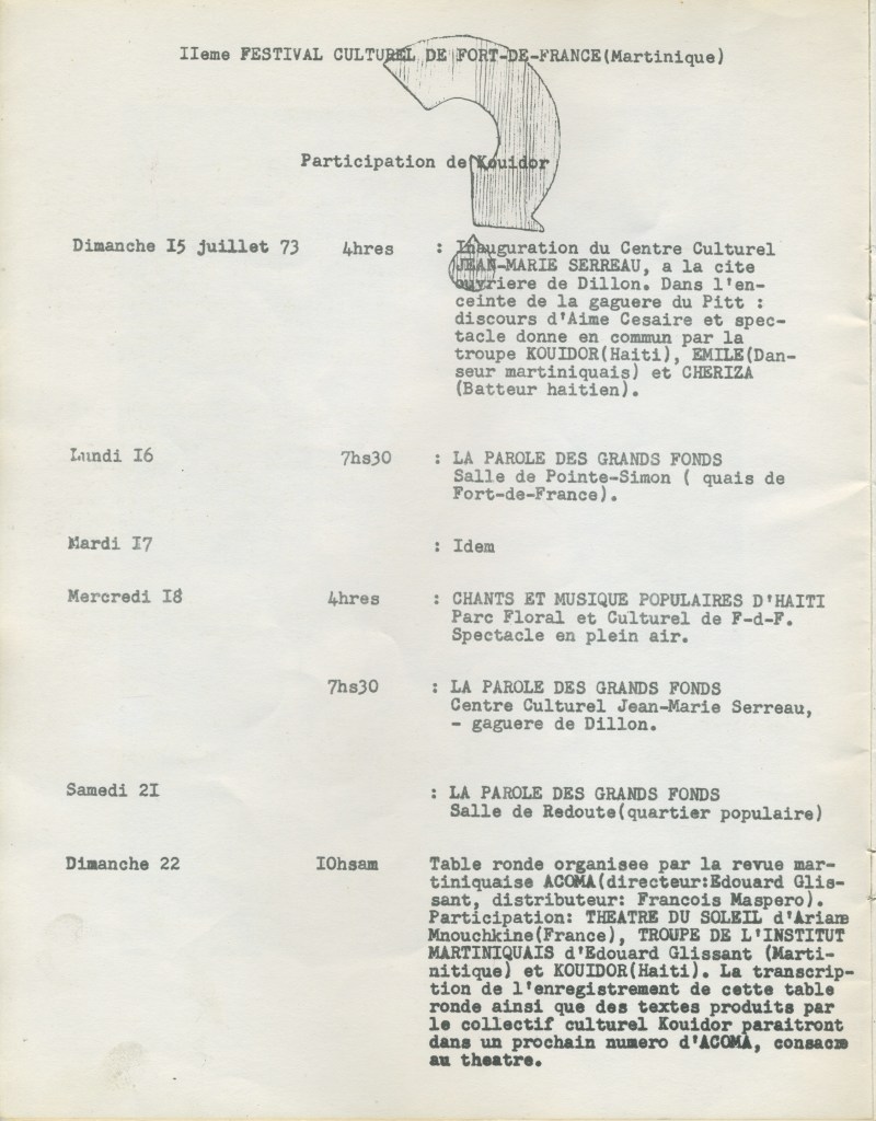 The Archive of La Troupe de Théâtre Kouidor: Photos, documents, music & video interviews from the Haitian experimental theater troupe.