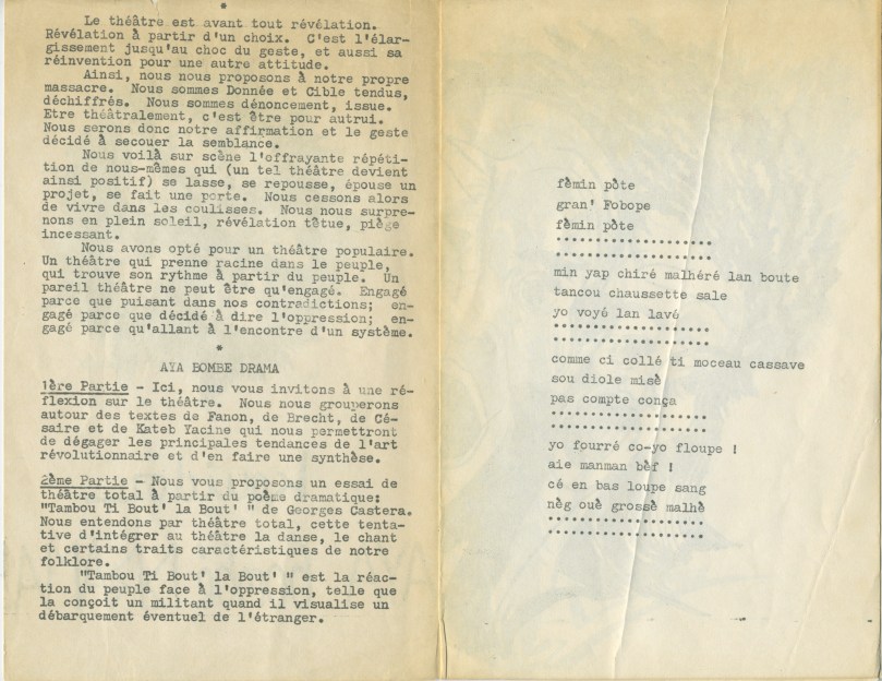 The Archive of La Troupe de Théâtre Kouidor: Photos, documents, music & video interviews from the Haitian experimental theater troupe.
