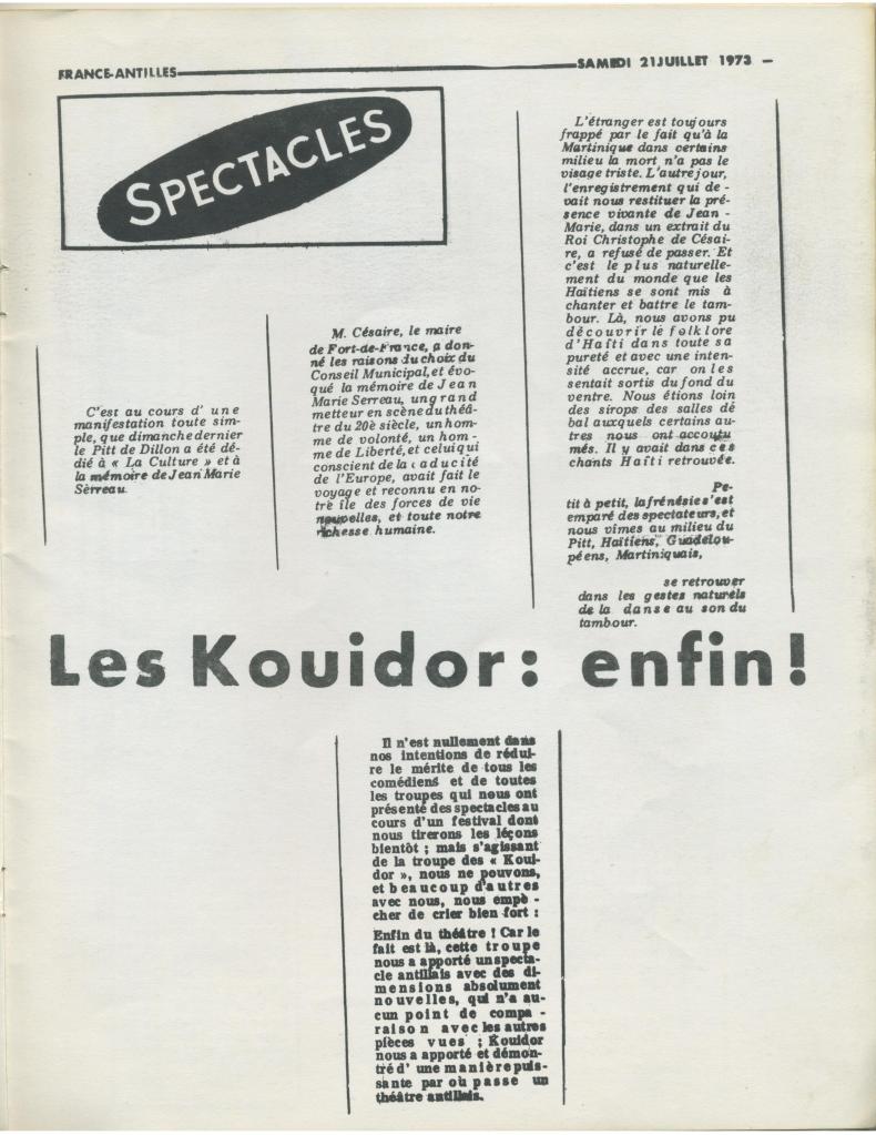 The Archive of La Troupe de Théâtre Kouidor: Photos, documents, music & video interviews from the Haitian experimental theater troupe.