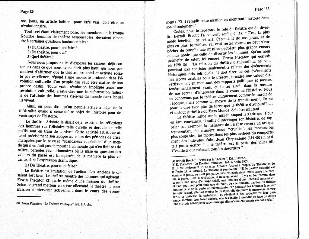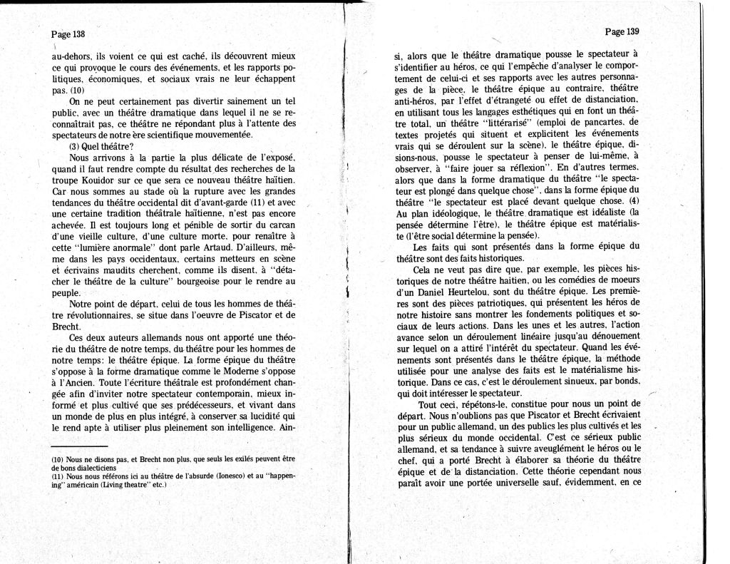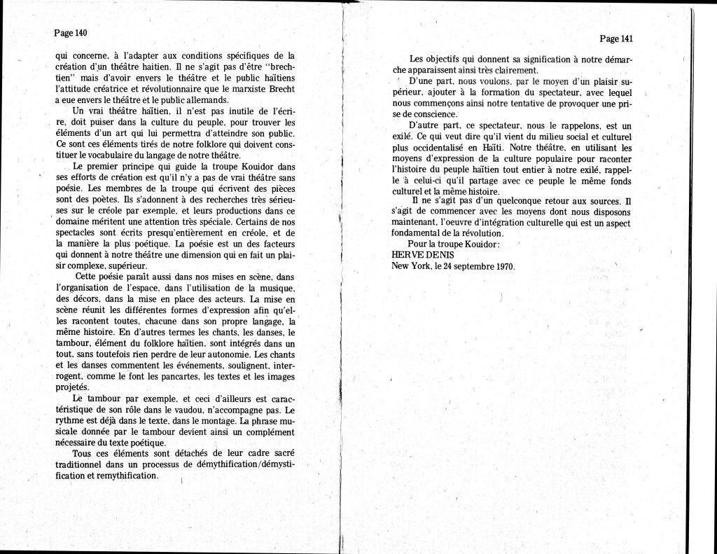 ‘Introduction à un manifeste pour un théâtre haïtien’ by Hervé Denis in Nouvelle Optique, Vol. 1 No. 2-3, May 1971.